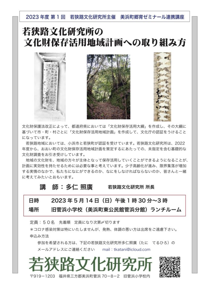 講座演題:若狭路文化研究所の文化財保存活用地域計画への取り組み方